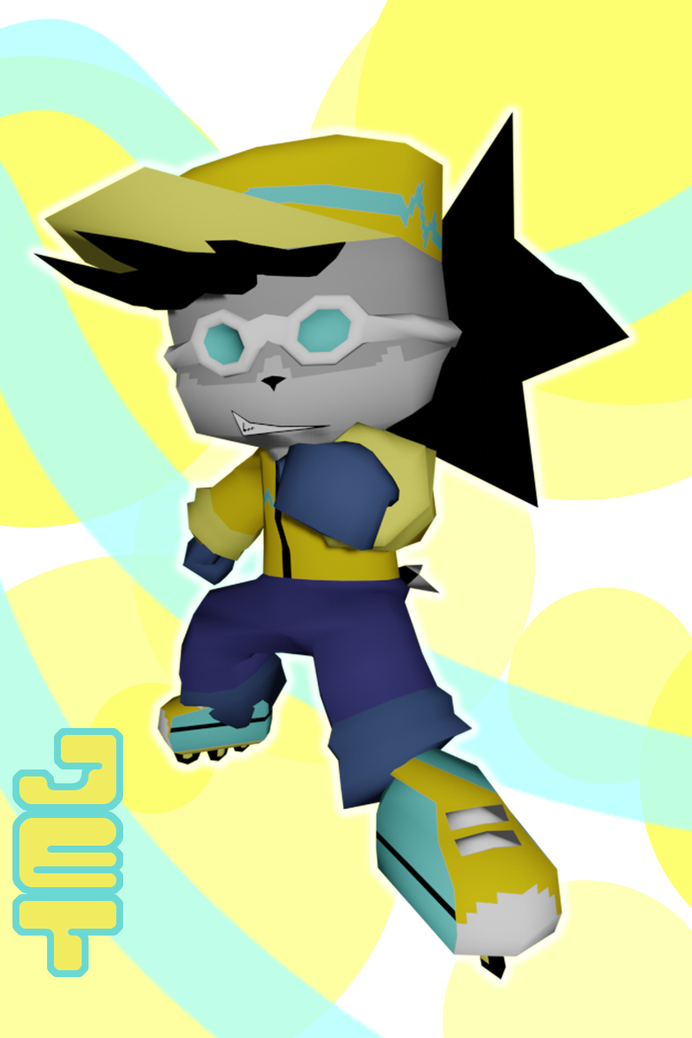 Jet is a self-proclaimed "Flow Skater" and has dreamed his entire life to enter the City of Skates racing tournament. He claims to be the coolest guy around, but his constant smug attitude often leaves other skaters annoyed by his antics and attempts at showing off. Regardless, his roller skating abilities are unmatched, and his top-of-the-line skates offer perfectly balanced stats that are easy to handle and allow for decent navigation around a variety of situations.