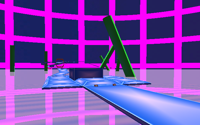 Within this vaporwave-like digital realm, skaters will travel across glowing blue platforms and grind across rails to reach the goal. Watch out for bumpy terrain and split routes, and try to reach the goal as fast as possible!